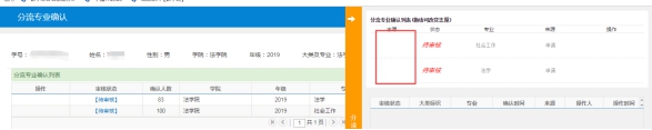 菜单目录:信息维护——分流专业确认