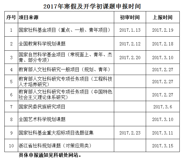 因寒假及下学期开学初课题申报比较集中,科研处做了一份课题申报时间表,供老师们参考。