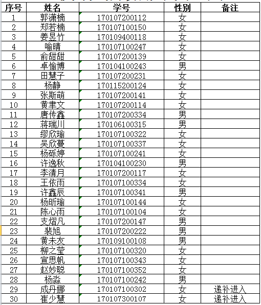 关于公布2017级国贸英华班录取名单的通知